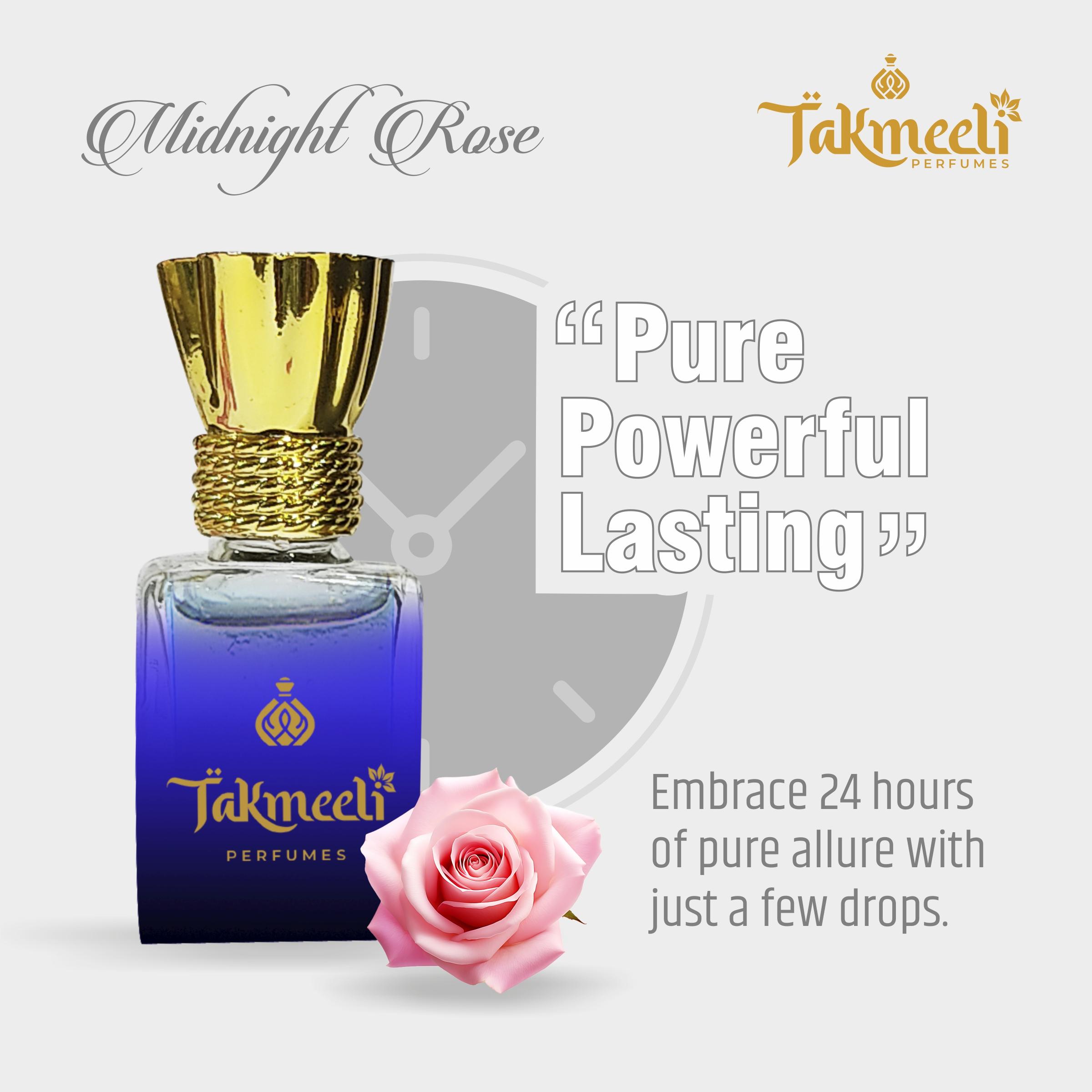 Embrace the essence of Midnight Rose Attar by Takmeeli Perfumes and let its unique fragrance speak for you.