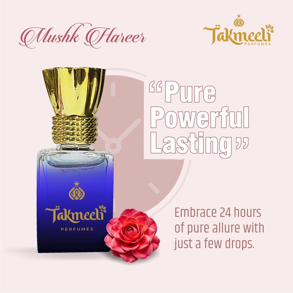 Indulge in the timeless allure of Mushk Hareer by Takmeeli Perfumes and add an element of sophistication to your daily scent ritual. This exquisite attar invites you to experience the art of traditional perfumery with every application.