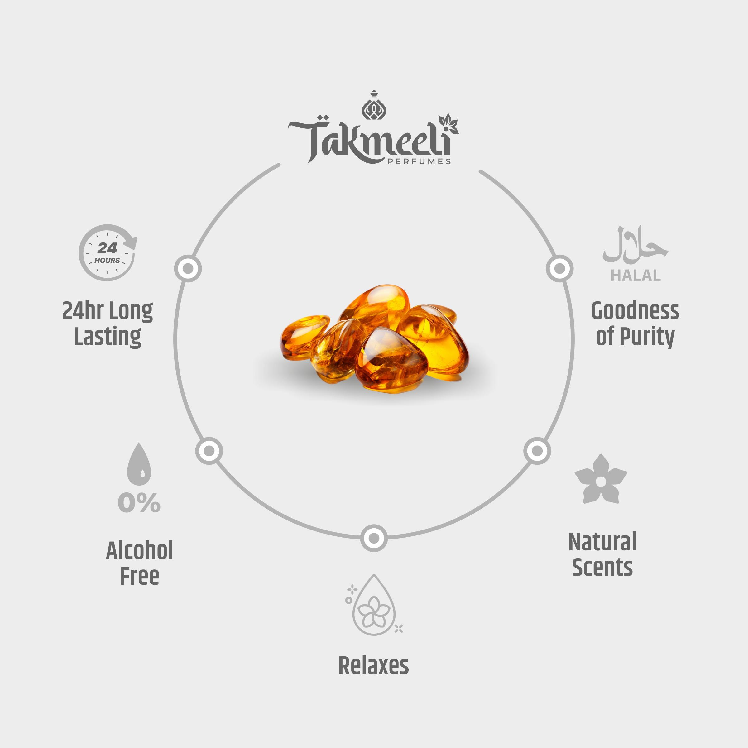 Takmeeli Perfumes prides itself on creating high-quality, traditional fragrances that cater to discerning tastes. Sultan ul Amber is more than just a scent; it's an expression of elegance and heritage. Perfect for those who value subtle luxury, this attar offers a warm, sensual aroma without the overpowering effects of synthetic ingredients or alcohol.